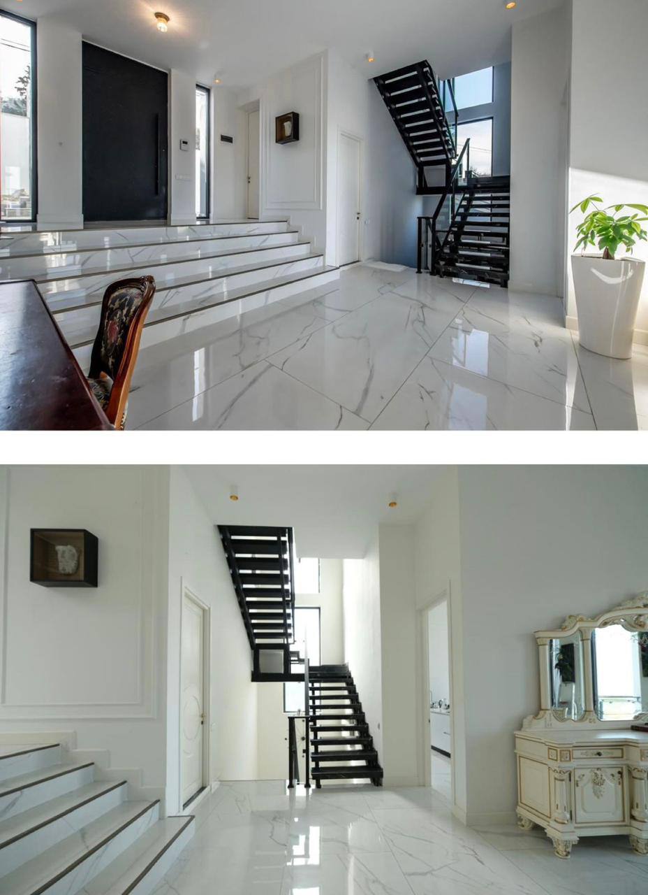 The house features 5 spacious master bedrooms, 7 bathrooms, 1 office room, a gym, a wine cellar, a 10x4 swimming pool, a 10 sq.m storage room, and parking space for 13 cars. A 120 sq.m rooftop veranda creates an exceptional outdoor living space, while each room also has its own private veranda.